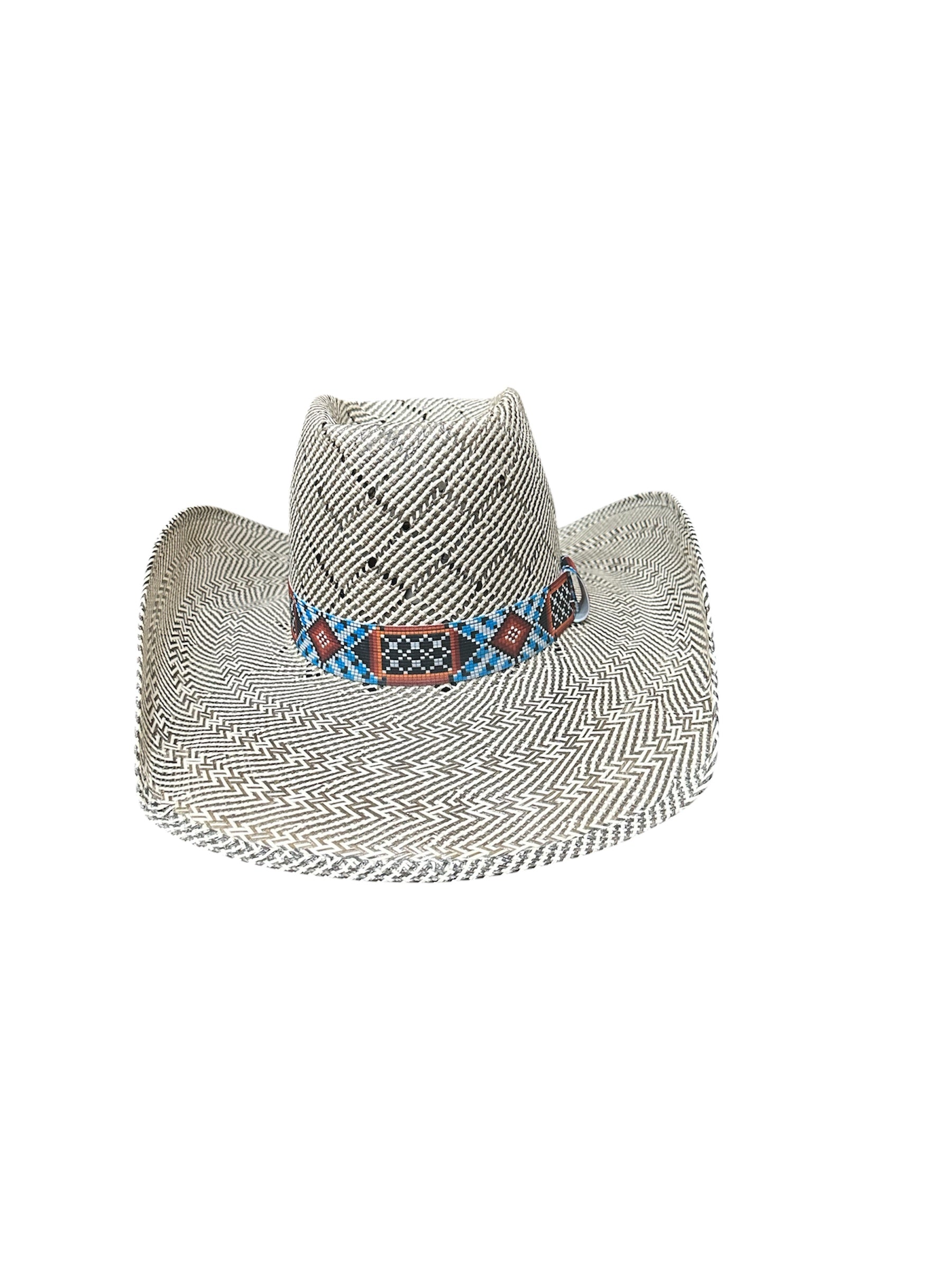 Turquoise and Rust Elastic Hat band with an Aztec print to add the final touch to any western hat.
